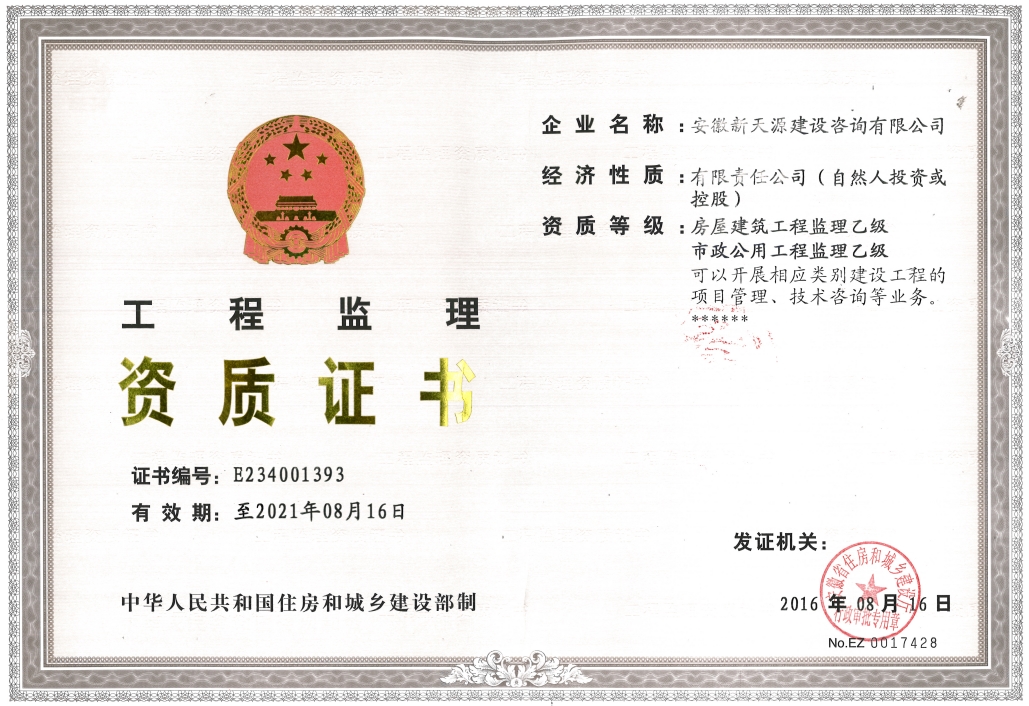 工程監理資質乙級